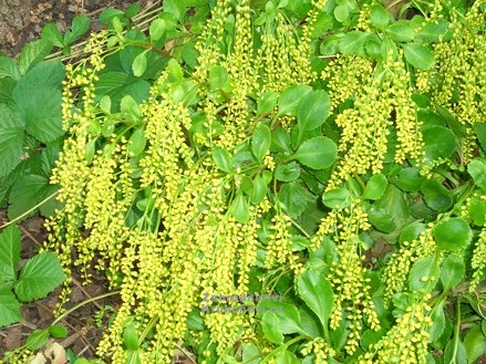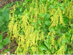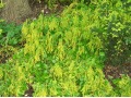 Chiastophyllum neboli pupovice vytváří pěkné koberce, začátkem léta je atraktivní převisajícími hrozny žlutozelených květů, které se podobají květům mimózy.